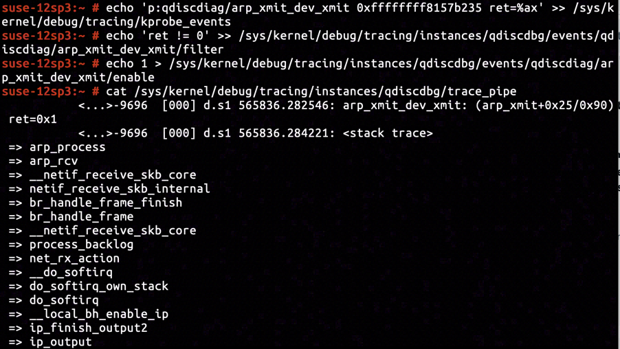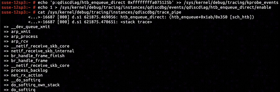 By inserting KProbe in ffffffffa075125b, we've captured a call stack exactly identical to the one including arp_process, proving that ARP response message was classified as HTB_DIRECT.
