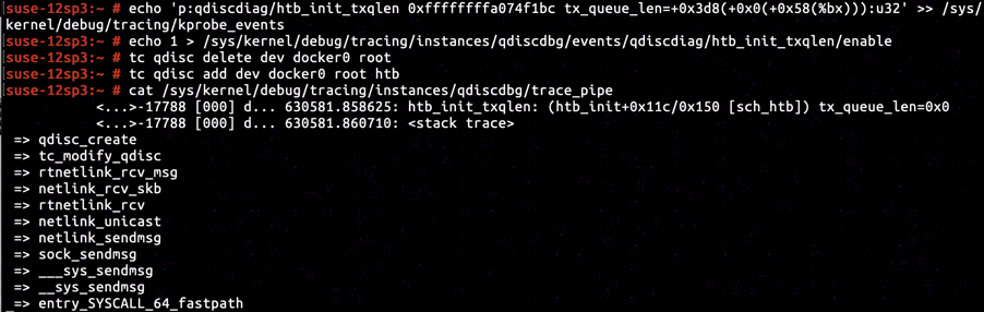 So let's have a look at the commit net: sched: drop all special handling of tx_queue_len == 0 introduced into Linux 4.3 mainline. Prior to Linux 4.3, htb_init will automatically handles the zero tx_queue_len from virtual network interface and clamp direct_qlen to at least 2. In spite of being part of Linux network module's refactoring, I think it has undeniably brought a breaking change into Linux 4.4.73 or at least SUSE12 SP3.